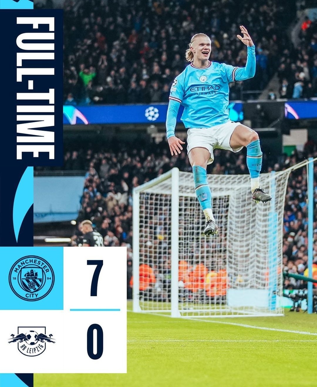 Rutahizamu Erling Braut Haaland yanditse aya mateka ubwo ikipe ye ya Manchester City yakinaga n’ikipe ya RB Leipzig yo mu gihugu cy’Ubudage muri Champions Legue bakayinyagira imiziga y’ibitego birindwi byose kubusa. mur’ibyo bitego birindwi uyu rutahizamu Erling Braut Haaland yatsinzemo ibitego wenyine aho haciye agahigo kari gafitwe na kizigenza Lionel Messi ko gutsinda ibitego 5 mu mukino umwe wa Ueafa Champions League anaca akandi gahigo ka Ruud Van Nisterlooy ko gutsinda ibitego 30 mu mikino mike kandi akiri muto.