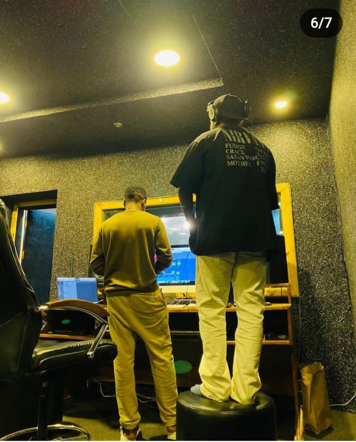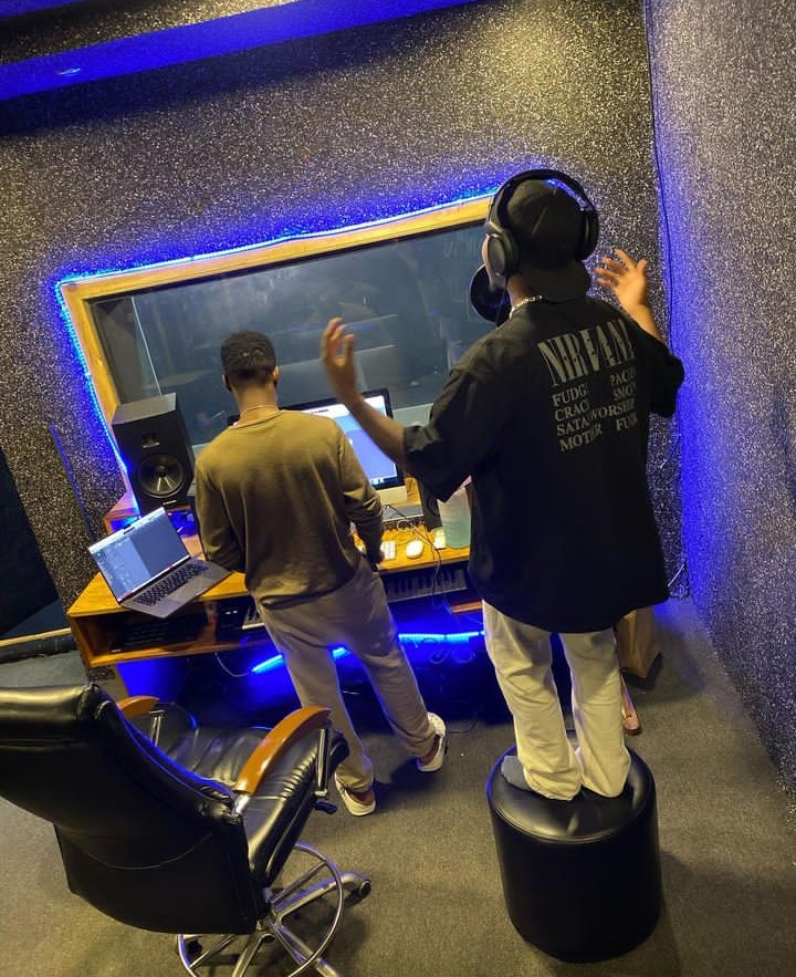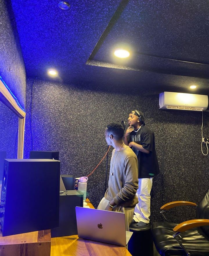 Kenny Sol uri mu bahanzi bagezweho yasekeje abamukurikirana nyuma yo kugaragara muri studio ari hejuru yagatebe ari nako arikodinga.