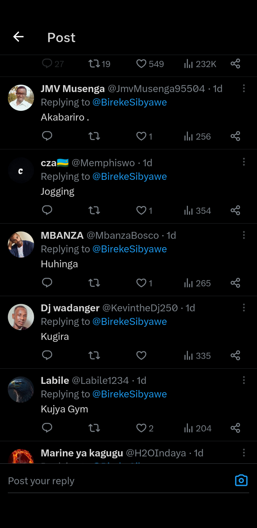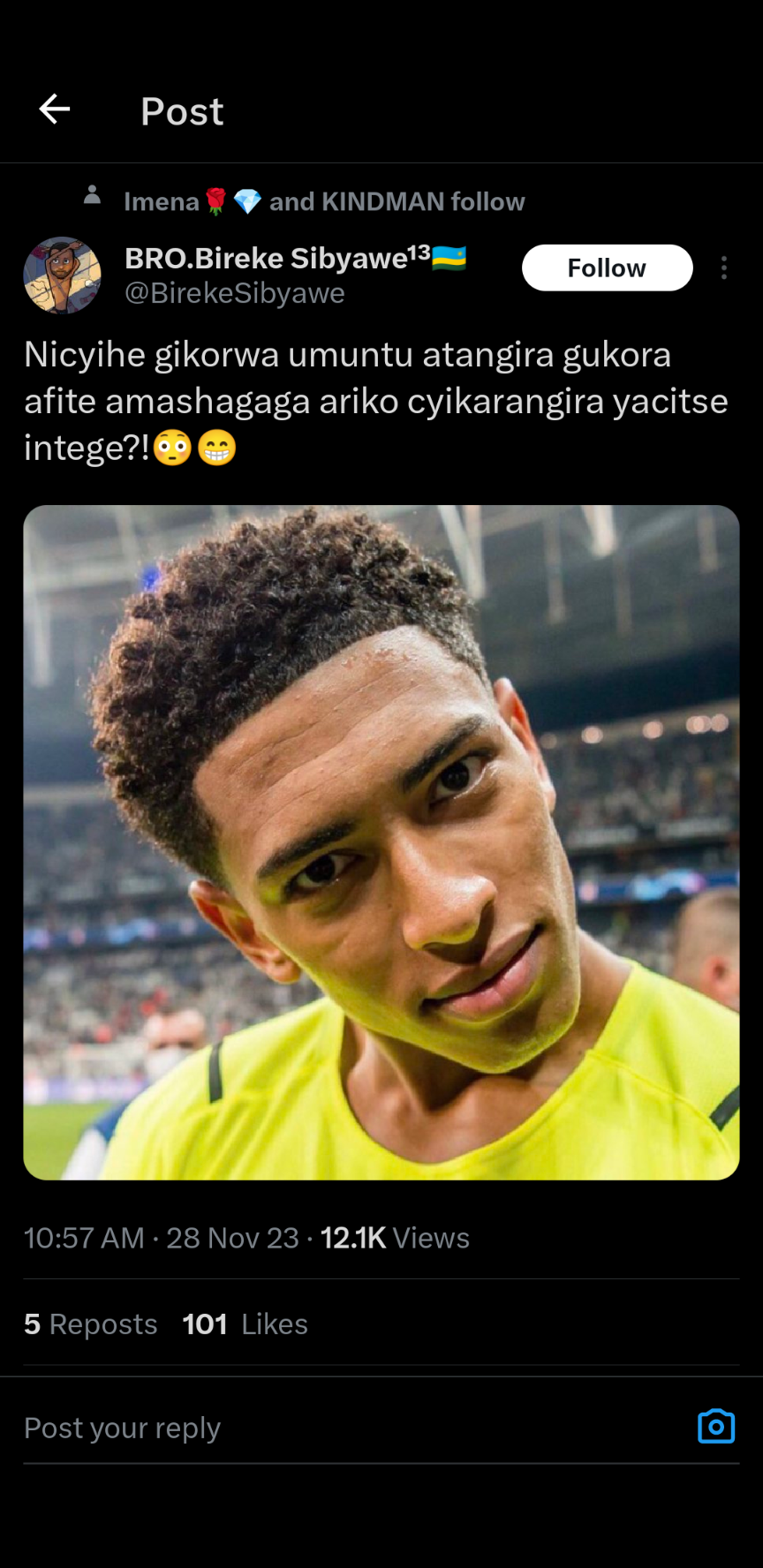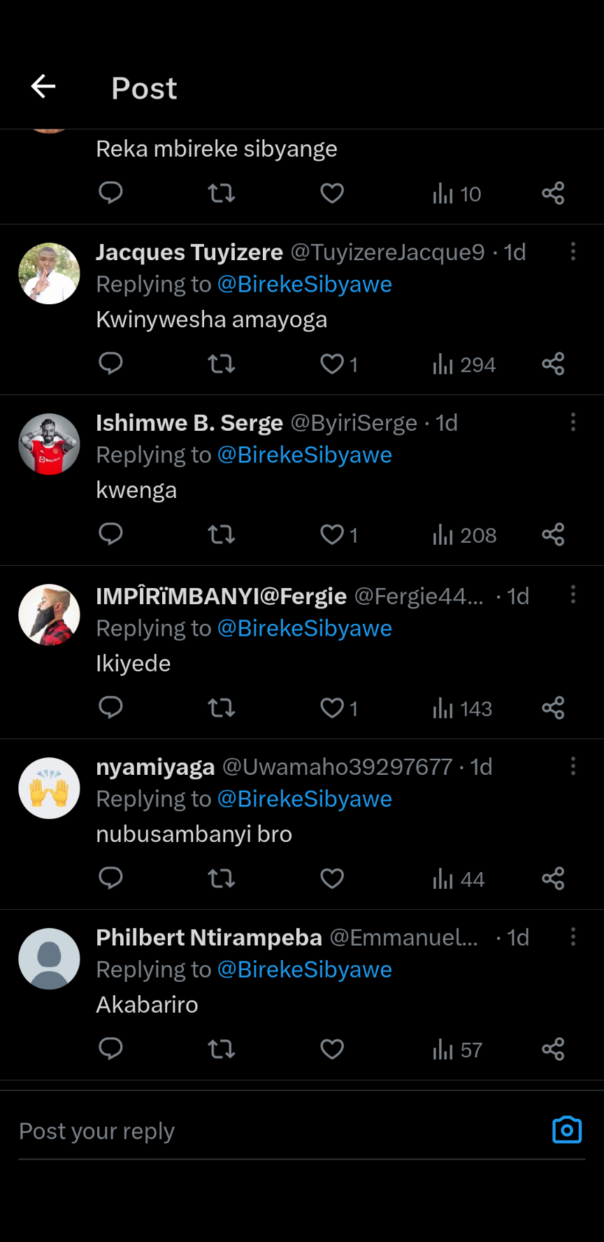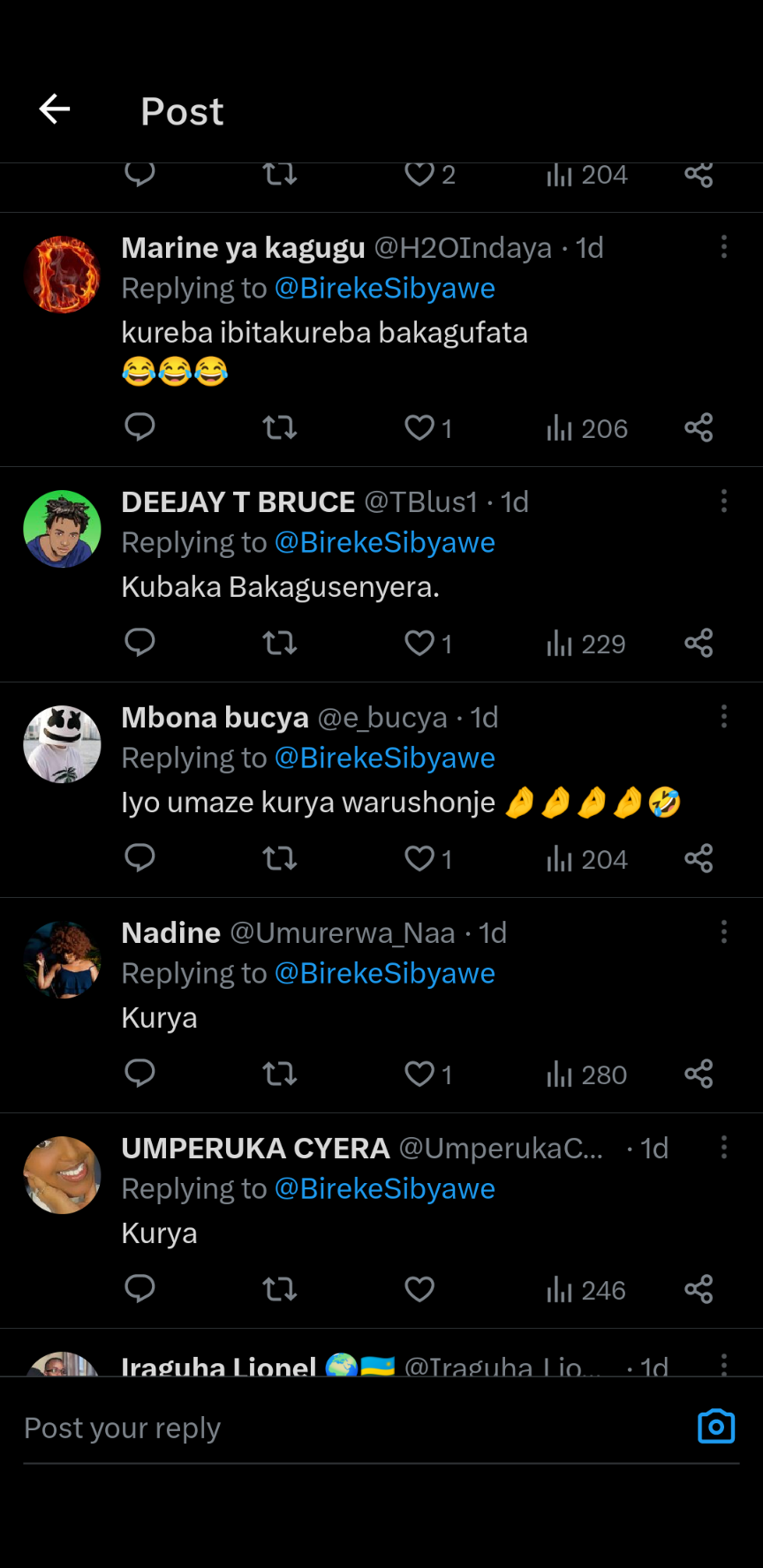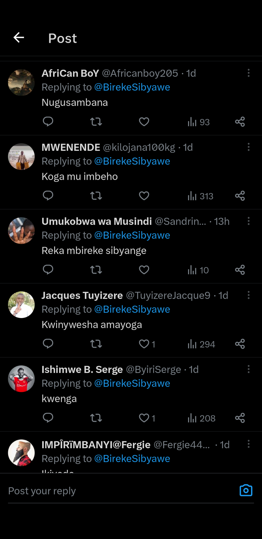 Abantu bakoresha urubuga rwa X bakomeje gutangaza amagambo menshi atandukanye nyuma yaho uwitwa BRO.Bireke Sibyawe agize ati:”Nicyihe gikorwa umuntu atangira gukora afite amashagaga ariko cyikarangira yacitse intege?”.
