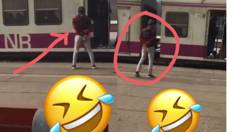 Binyuze mu mashusho umugabo bigaragara ko akuze yasekeje abantu nyuma yo guhengera mugenzi we ari muri gare ya moshi iri kugenda akamukubita urushyi rw’amatama.