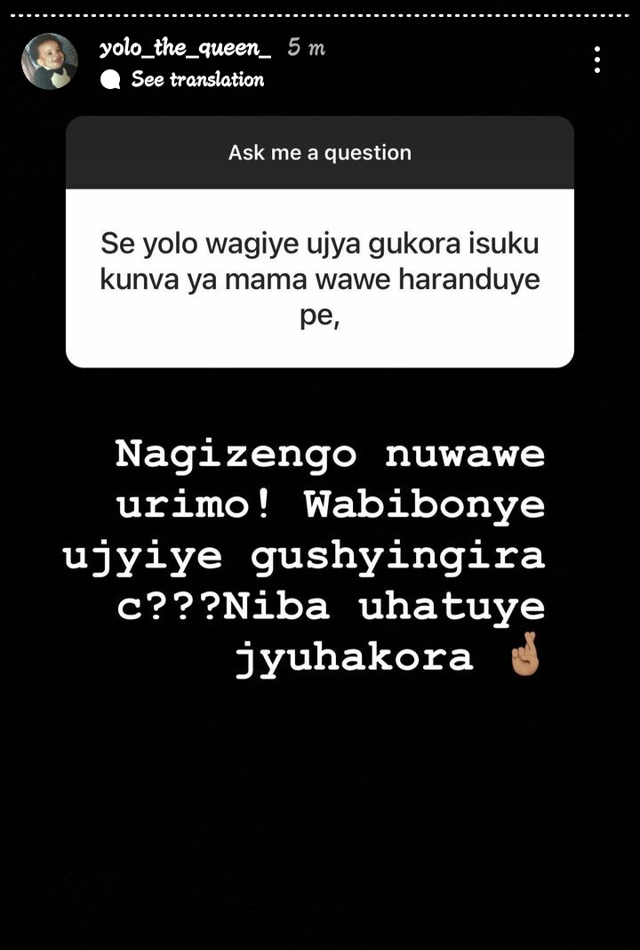Yolo the Queen  yagize ati “naringize ngo ni uwawe urimo! Wabibonye ugiye gushyingura se??  Niba uhatuye ujye uhakora”.