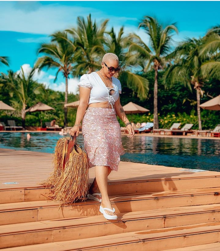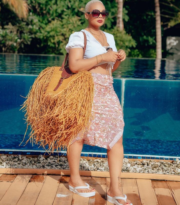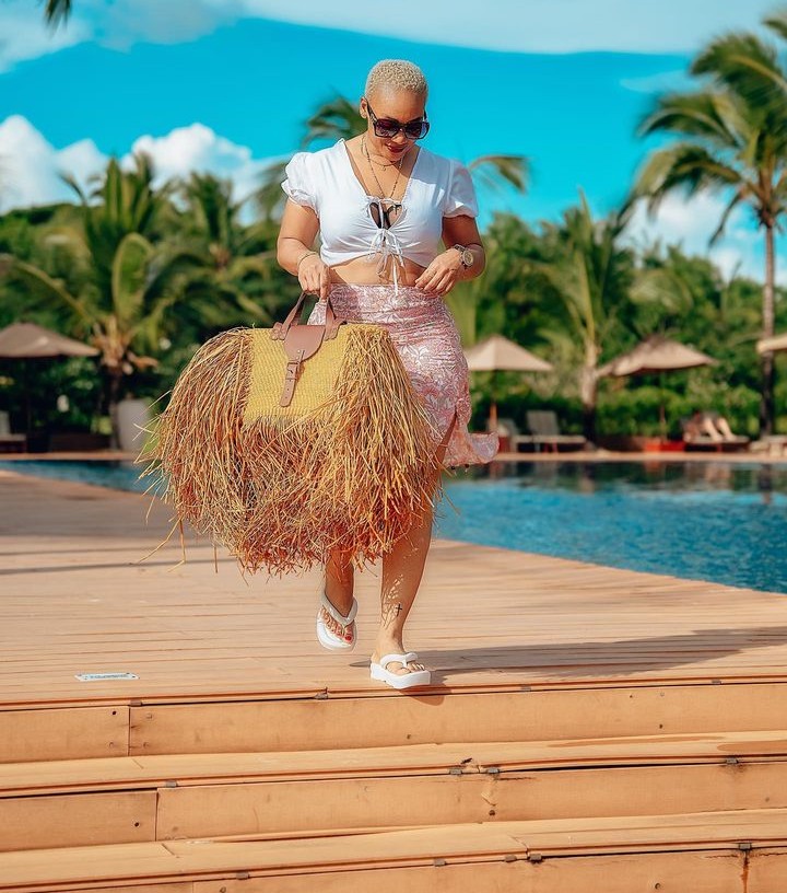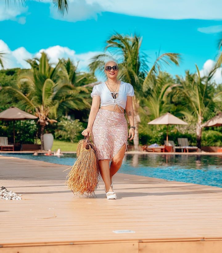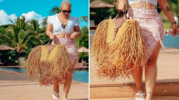 Uyu mubyeyi wavuzwe cyane mu rukundo na Harmonize ariko bakaza gutandukana, yasangije abamukurikira ku rukuta rwe rwa Instagram amafoto arimo atambuka yitwaje n’ishakoshi ifite ubugeni butamenyerewe.