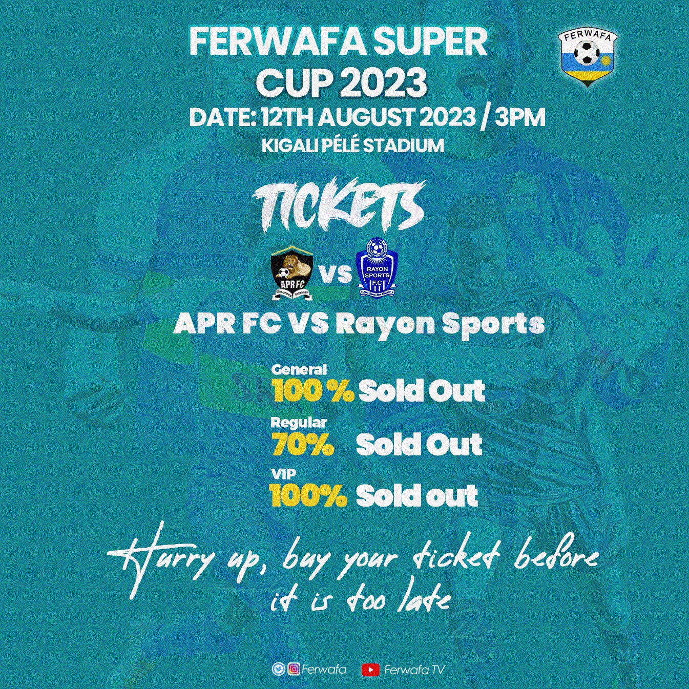 Mu gihe habura iminsi mike gusa ngo ikipe ya Rayon Sports icakirane na APR FC, mu guhatanira igikombe cya Super Cup, FERWAFA yatangaje ko amatike yo kwinjira kuri uyu mukino hasigaye mbarwa.