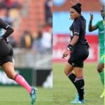 Abakinnyi bajya bamurangarira kubera ubwiza bwe! Umusifuzi Akhona Makalima uzwiho kugira ikimero n’ubwiza bihebuje ategerejwe mu bazasifura umukino wa Al Ahly na Simba SC – AMAFOTO