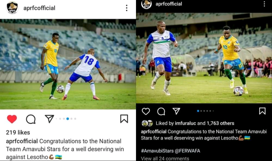 APR FC yashimangiye ko yatandukanye na Fitina Omborenga ubwo ku rubuga rwayo rwa Instagram yifurizaga intsinzi Amavubi ikoresheje ifoto y’uyu mukinnyi ariko nyuma gato ikaza kuyisiba ikayisimbuza andi mafoto ariho umukinnyi wayo Mugisha Gilbert.