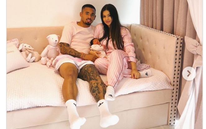 Gabriel Jesus n’umugore we, uyu mwana wabo wa mbere bakaba bamwise Helena, ubazaniye ibyishimo n’umunezaro mu muryango wabo.