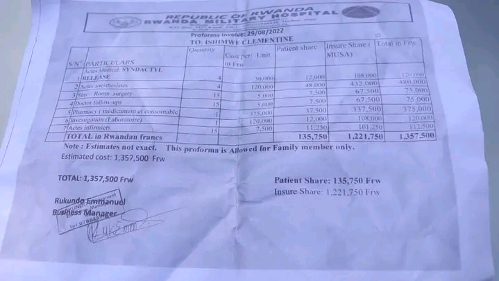 Uyu mubyeyi witwa Nzabamwita Mariya Goretti utuye mu murenge wa Kinyinya mu karere ka Gasabo akaba arasaba umugiraneza wese wabishobora kumufasha kuvuza umwana we wavukanye ikibazo cy’ intoki n’ amano bifatanye ndetse n’ amagufa yamunzwe.