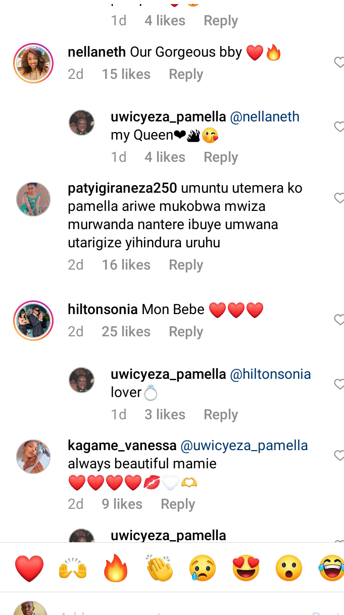 Abinyujije kuri Instagram Miss Pamella yashyize hanze amafoto ye , bituma abenshi mu bafana be bamubwira ko The Ben yahisemo neza kubera uburyo uyu mukobwa ari ikizungerezi.