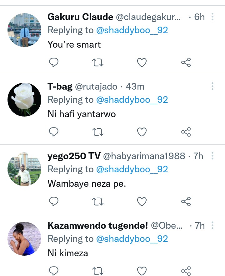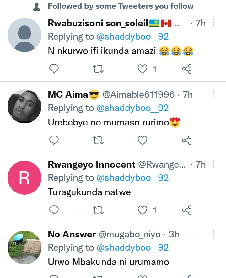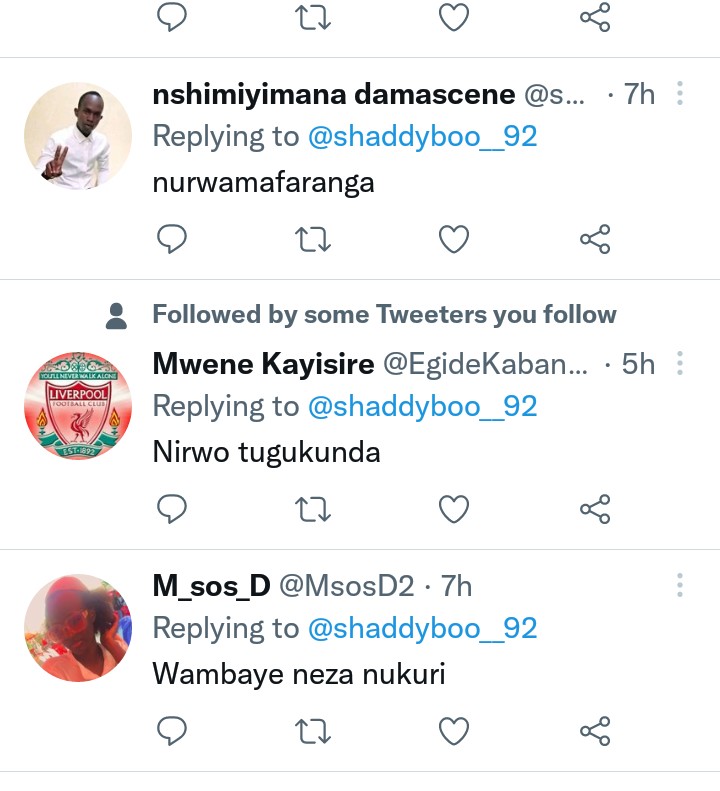 Ku rukuta rwe rwa twitter yashyizeho iyi foto ubundi abwira abantu ati ” uzuza uyu mugani ‘ urwo mbakunda…….’ “. Abantu benshi bagiye bawuzuza uko babitekereza. Ndetse ntiwatinya kuvuga ko iyi foto iri ku isonga mu mafoto yose yaba yarasangije.