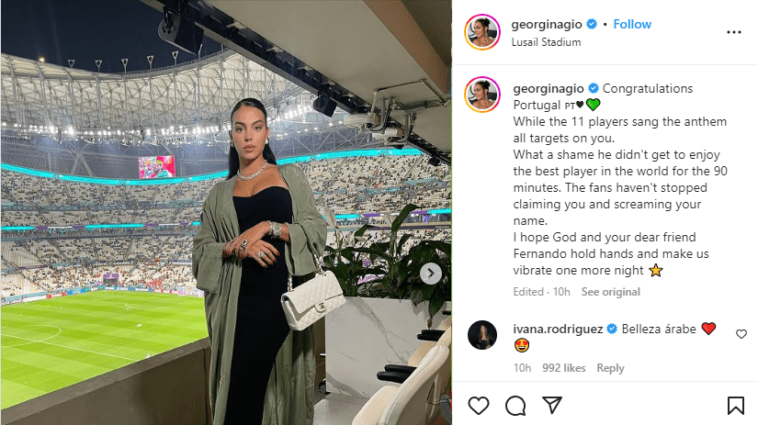 Georgina Rodriguez umufasha wa kizigenza Cristiano Ronaldo yasabye umutoza wa Portugal guha agahenge umugabo we ndetse akajya amuha umwanya wo kubanza mu kibuga.