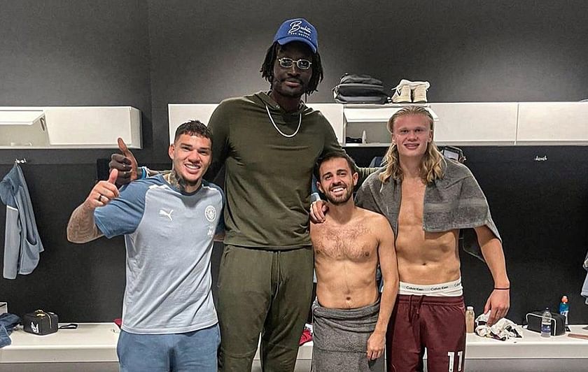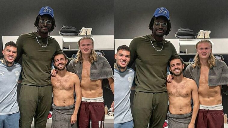 Mamadou N’Diaye ni umukinnyi wa Basketball aho areshya nka metero 2,29 mu burebure, yifotoranyije n’abakinnyi ba Manchester City barimo Haaland na Bernardo Silva gusa bose bari babaye utwana kuri we.