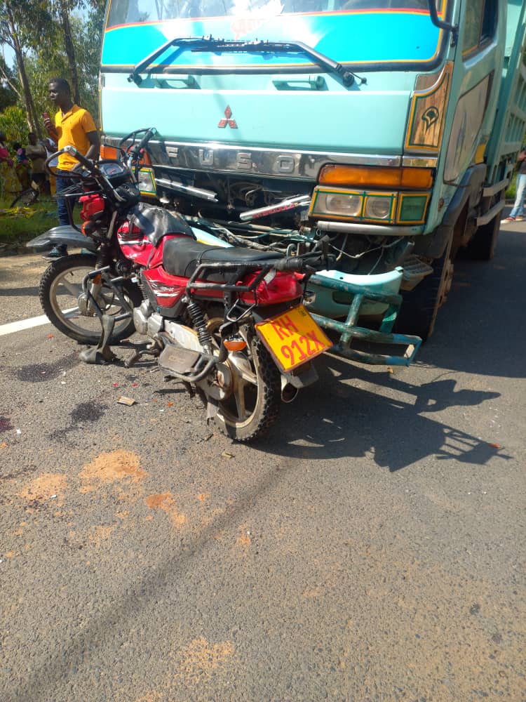 Impanuka yabaye mu masaha ya saa munani, hapfuye motari wari utwaye moto witwa Nambajimana Jean w’imyaka 34 y’amavuko, hakomereka uwo yari atwaye witwa Irutabyose Jean de la Croix w’imyaka 23 y’amavuko.