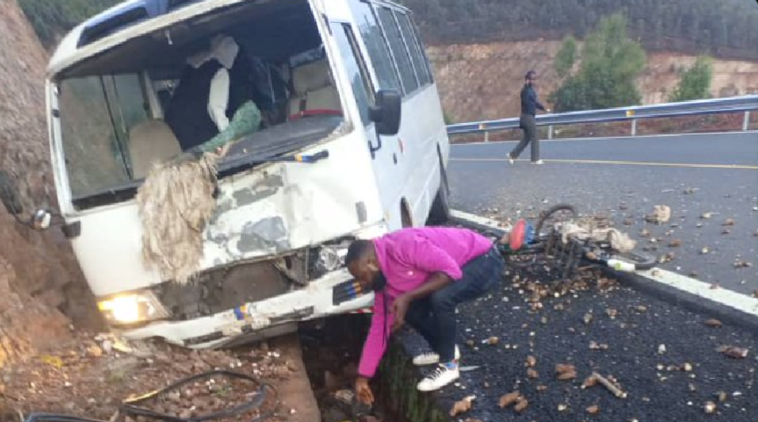 Gicumbi habereye impanuka iteye ubwoba y’imodoka itwara abagenzi mu buryo bwa rusange aho umugenzi yaciye mu kirahure agwa mu muferege bamutoragura yapfuye -IFOTO