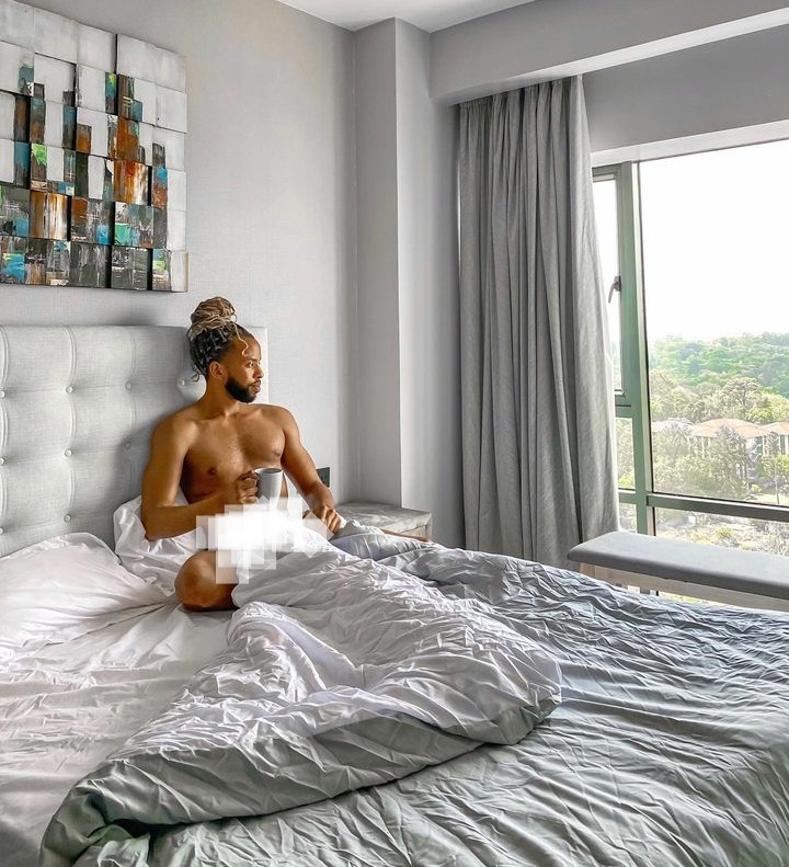 Abinyujije ku rukuta rwe rwa Instagram yasohoye ifoto yambaye ari kugitanda yambaye uko yavutse, ahisha imyanya ndanga gitsina gusa.