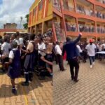 Wa muhanzi wasimbutse imodoka ya Polisi iri kugenda, yagiye gufata umukobwa we ku ishuri ngo bajye gusangira ibya saa maze abanyeshuri biga aho bamwuzuraho bamubuza kugenda [videwo]