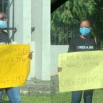 Abantu bashavujwe n’abakobwa barangije kaminuza birwa bafite ibyapa bashaka akazi