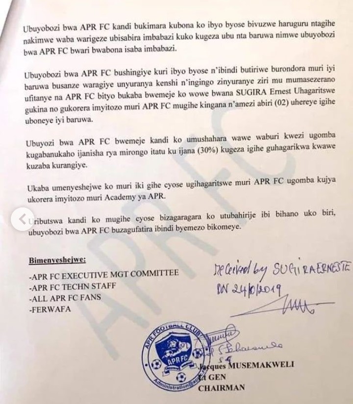 Dore ibaruwa yandikiwe Sugira: