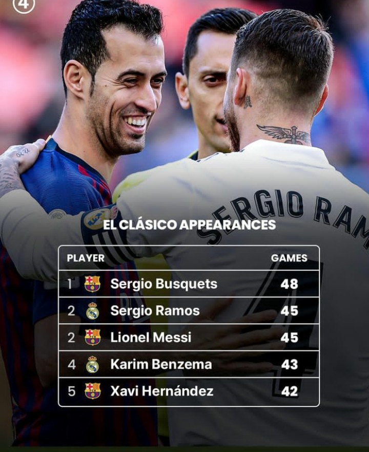 Sergio Busquets niwe wakinnye El Clasicco nyinshi.