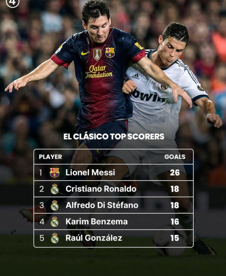 Nkuko byagaragaye mu mafoto, Lionel Messi niwe watsinze ibitego byinshi muri El Clasicco ndetse ni nawe watanze Assist Nyinshi, muri make kugeza magingo aya niwe ukiri umwami wa El Clasicco.