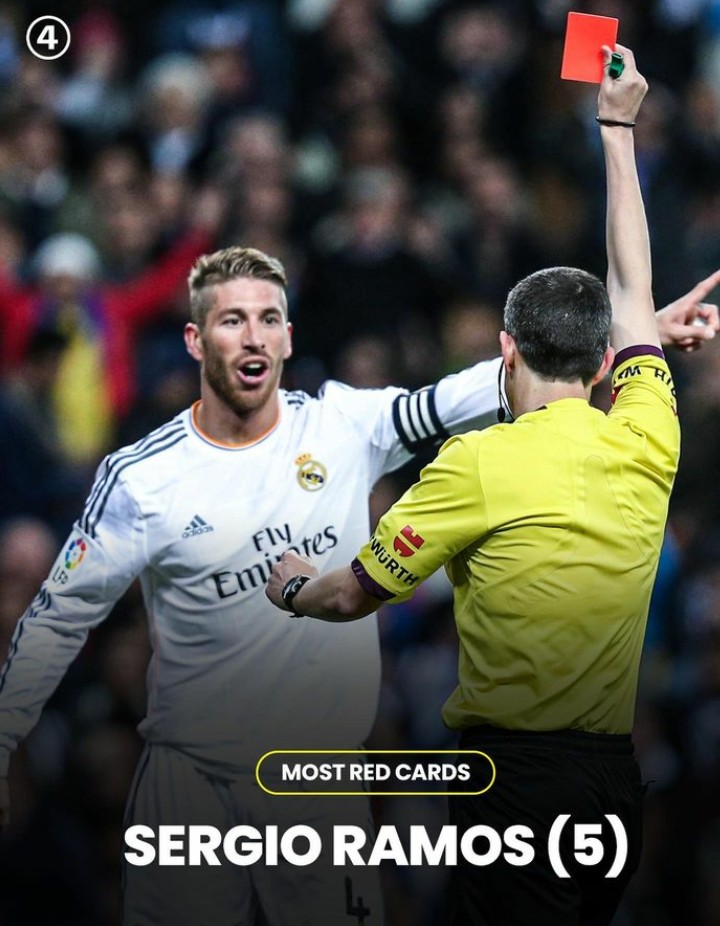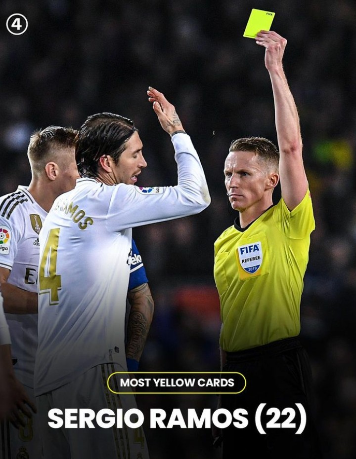 Sergio Ramos niwe wabonye amakarita menshi y’umuhondo