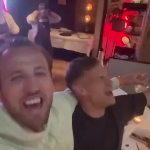 Yari kumwe na bagenzi be barimo Eric Dier, Joshua Kimmich na Serge Gnabry, baririmbana indirimbo “We Are The Champions”, Kane ashyira hanze amashusho binyuze kuri konti ye ya X.