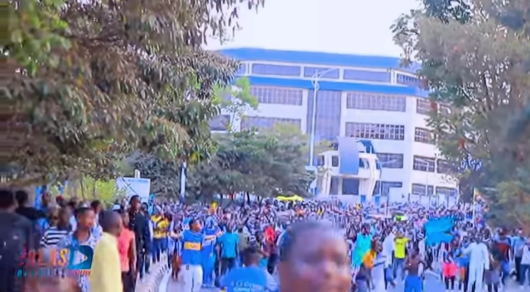 Mu mashusho akomeje gusakara ku mbuga nkoranyambaga zigiye zitandukanye yerekana abafana ba Rayon Sports buzuye umuhanda bari kwishimira intsinzi y’ibitego bitatu ku busa batsinze APR FC.
