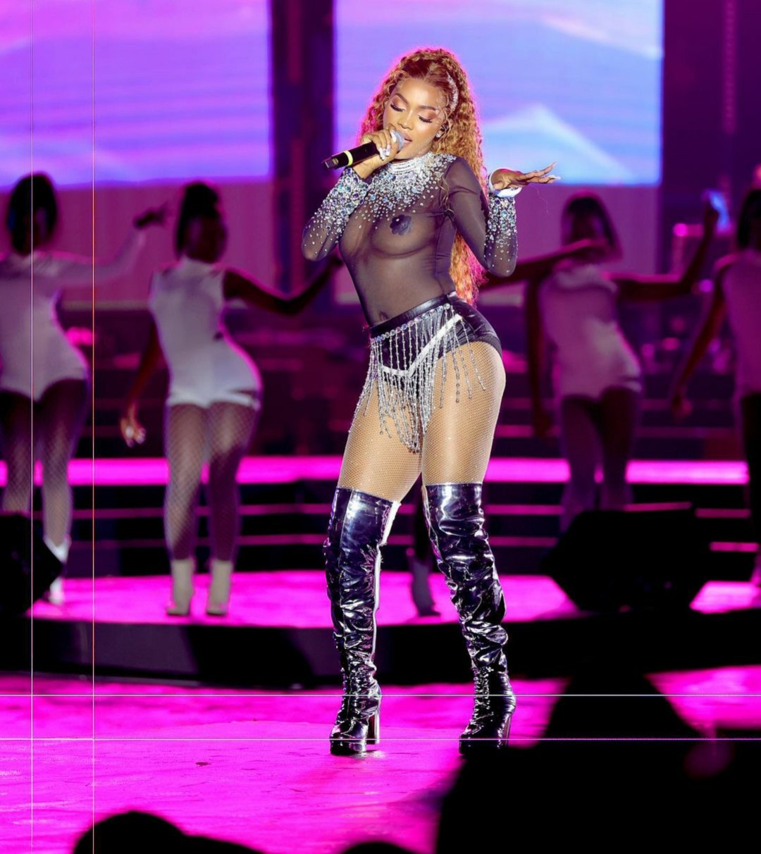 Ni Spice Dianna ukomoka mu gihugu cya Uganda, aho yagiye ku rubyiniro yambaye imyambaro yerekana amabere ye.