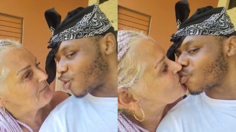 Urukundo ni rwogere: Umusore uri mu rukundo n’umukecuru rukukuri washize mo amenyi  akomeje kuvugisha benshi [Video]