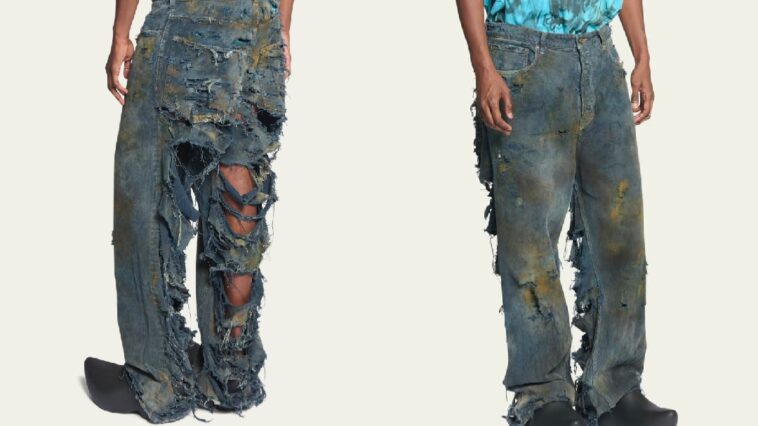 Uruganda rwa Balenciaga, rwatunguye abantu benshi ubwo basohoraga imyenda imyenda y’abagabo yashaje akayashyira ku mafaranga ibihumbi bibiri by’amadorari.