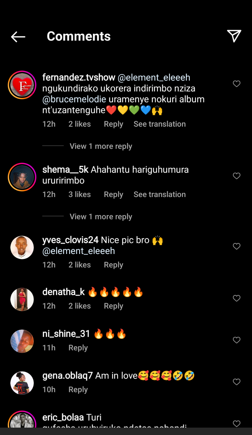 Umuhanzi akaba n’umuhanga mugutanganya imiziki Element yifashishije imbuga nkoranyambaga ze yasangije abakunzi be amafoto meza cyane maze abantu batandukanye batangira kumwereka urukundo rudadanzwe ari nako bamubwira amagambo aryoheye amatwi.