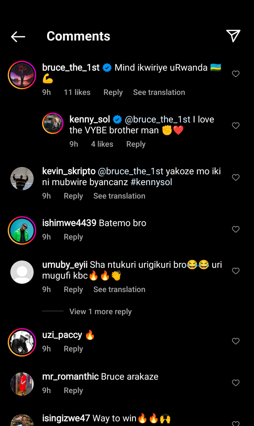 Umuhanzi ukunzwe cyane hano mu Rwanda Kenny Sol yifashishije imbuga nkoranyambaga ze yasangije abakunzi be amafoto meza cyane maze abarimo umuraperi Bruce The 1st ndetse na Producer Bob Pro batangira ku mwereka ko arenze babinyujije ahatangirwa ibitekerezo.