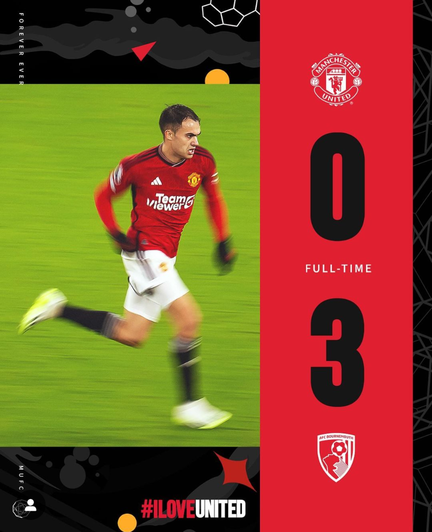 Ikipe ya Manchester United yo mu gihugu cy’u Bwongereza ikomeje kuba iciro ry’imigani i Burayi dore ko mukanya yongeye gusebera imbere y’abakunzi bayo mu mukino wa shampiyona wayihuzaga n’ikipe ya Bournemouth aho itsinzwe ibitego 3-0 bitumye abakunzi bayo barara batishimye.