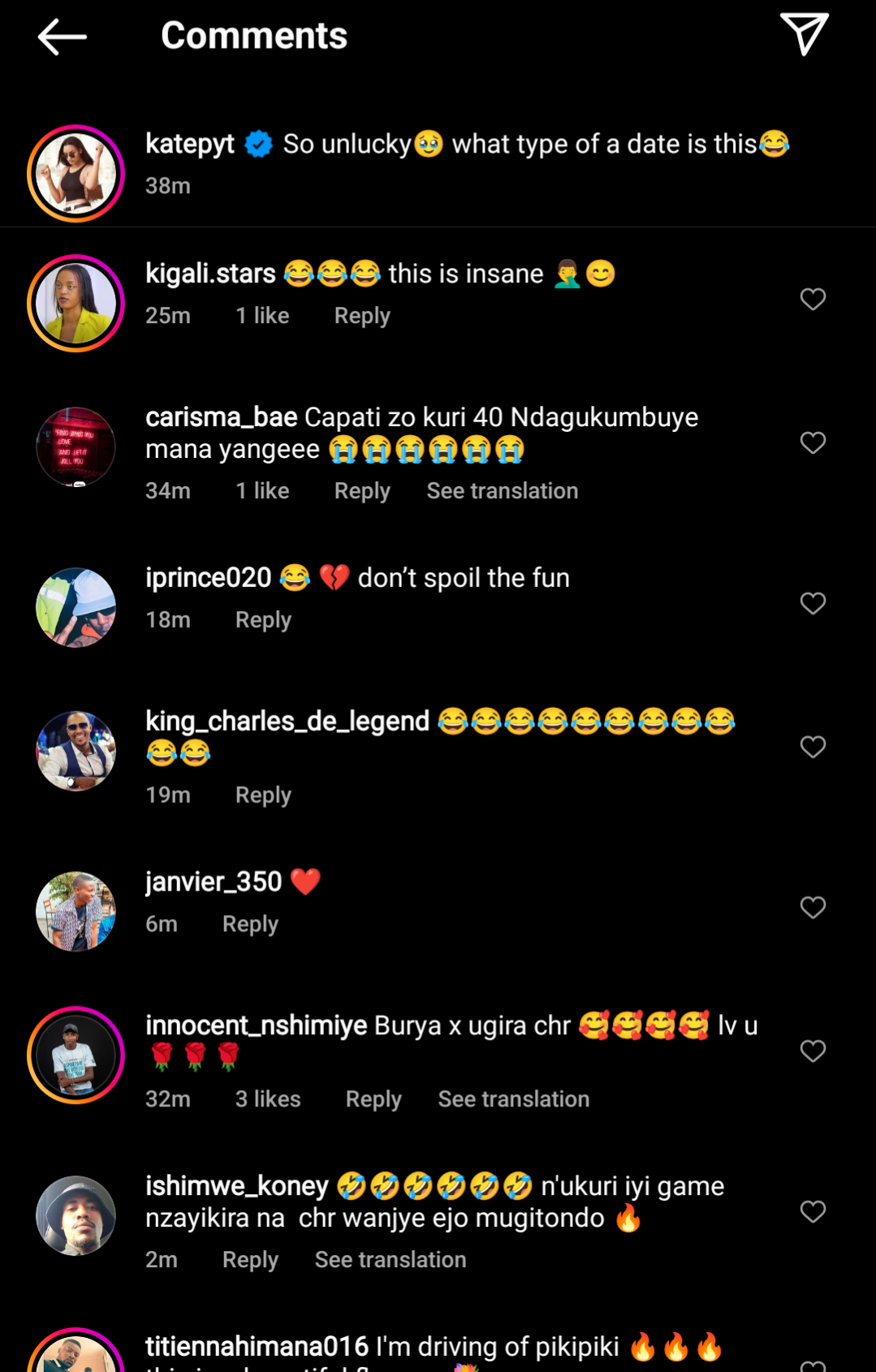 Abinyujije kurukuta rwe rwa Instagram yashyizeho amashusho ari gukina umukino wo gutombora gusa icyaje gutungura abantu ni ukuntu yatomboye kurira capati kumuhanda akabikora ntasoni afite.
