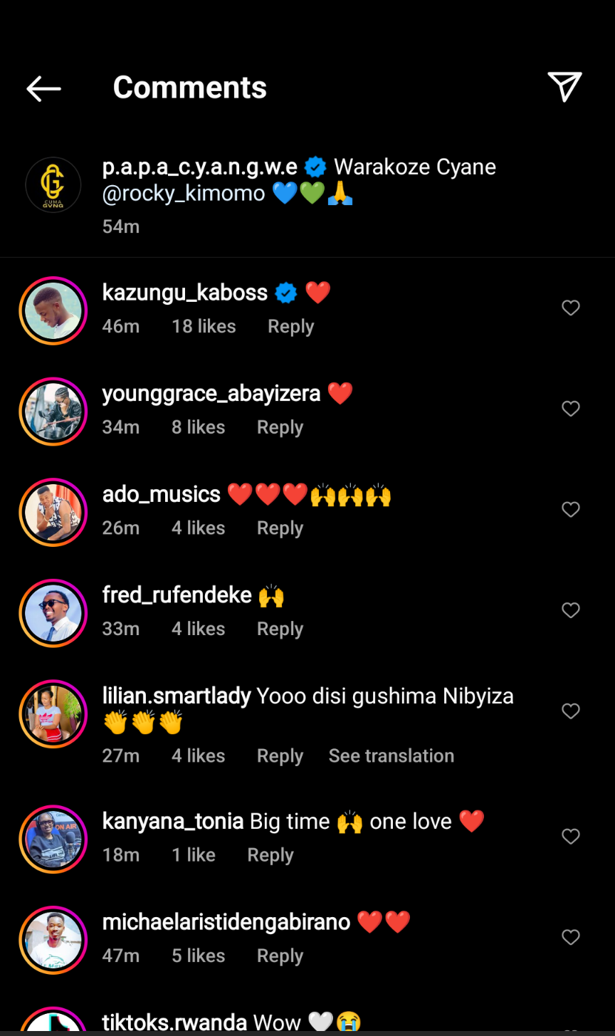 Umuraperi Papa Cyangwe wamenyekanye cyane mu muziki nyarwanda kubera umusobanuzi wa filime Rocky Kimomo yifashishije imbuga nkoranyambaga ze yashimiye byimazeyo Rocky watumye abantu bamumenya.
