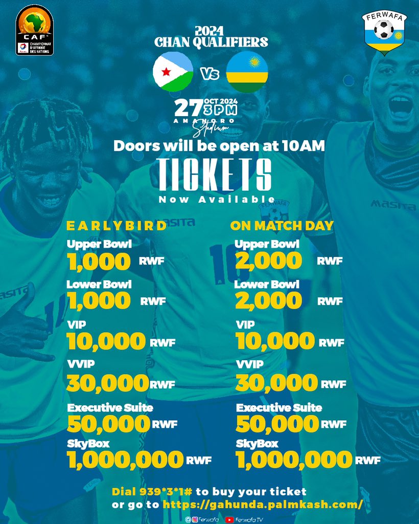 Ishyirahamwe ry’umupira w’amaguru muri Djibouti (FDF) ryamaze gushyira ahagaragara ibiciro by’amatike y’uyu mukino, aho byateguwe mu byiciro bitandukanye kugira ngo byorohere abafana b’ingeri zose kwitabira no gushyigikira ikipe yabo.