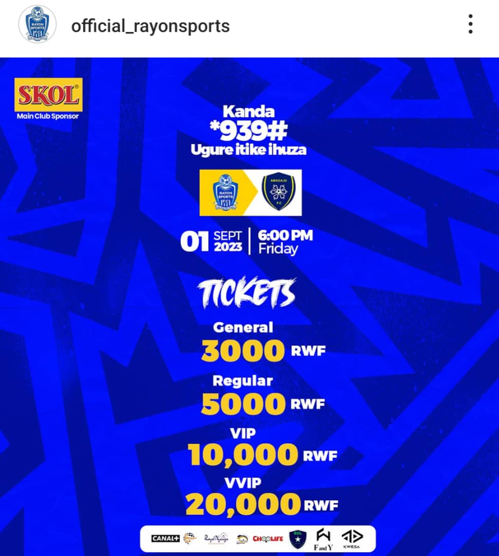 Ikipe ya Rayon Sports yashyize ahagaragara ibiciro byo kwinjira ku mukino wayo n’ikipe ya AMAGAJU FC uteganyijwe kuri uyu wa gatanu tariki ya 1 Nzeri 2023.