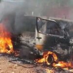 Mu muhanda rwa gati, imodoka yari itwaye abantu yafashwe n’inkongi y’umuriro irashya irakongoka izuba riva – AMAFOTO