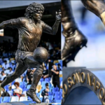 Amafoto:Ikirangirire mu mupira wamaguru Diego Maradona y’ubakiwe ikibumbano kiri mu ishusho ye gifite akaguru ka zahabu