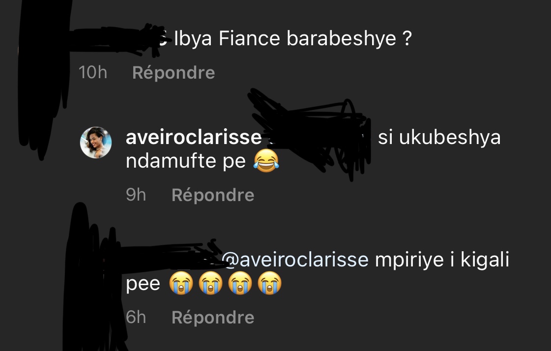 Ni nyuma y’amashusho Clarisse yari yashyize ku rukuta rwe rwa instagram aho yasobanuraga uburyo yifuza kuzabyara impanga maze umusore wamukunze aboneraho amubaza niba afite fiancé. Uwo musore yamubajije mu magambo agira ati « Ibya fiancé barabeshye? », Clarisse amusubiza agira ati « si ukubeshya ndamufite pe😂 ». Uwo musore yahise afata icyemezo mu magambo agira ati « @aveiroclarisse mpiriye i Kigali pee😭😭😭😭 ».