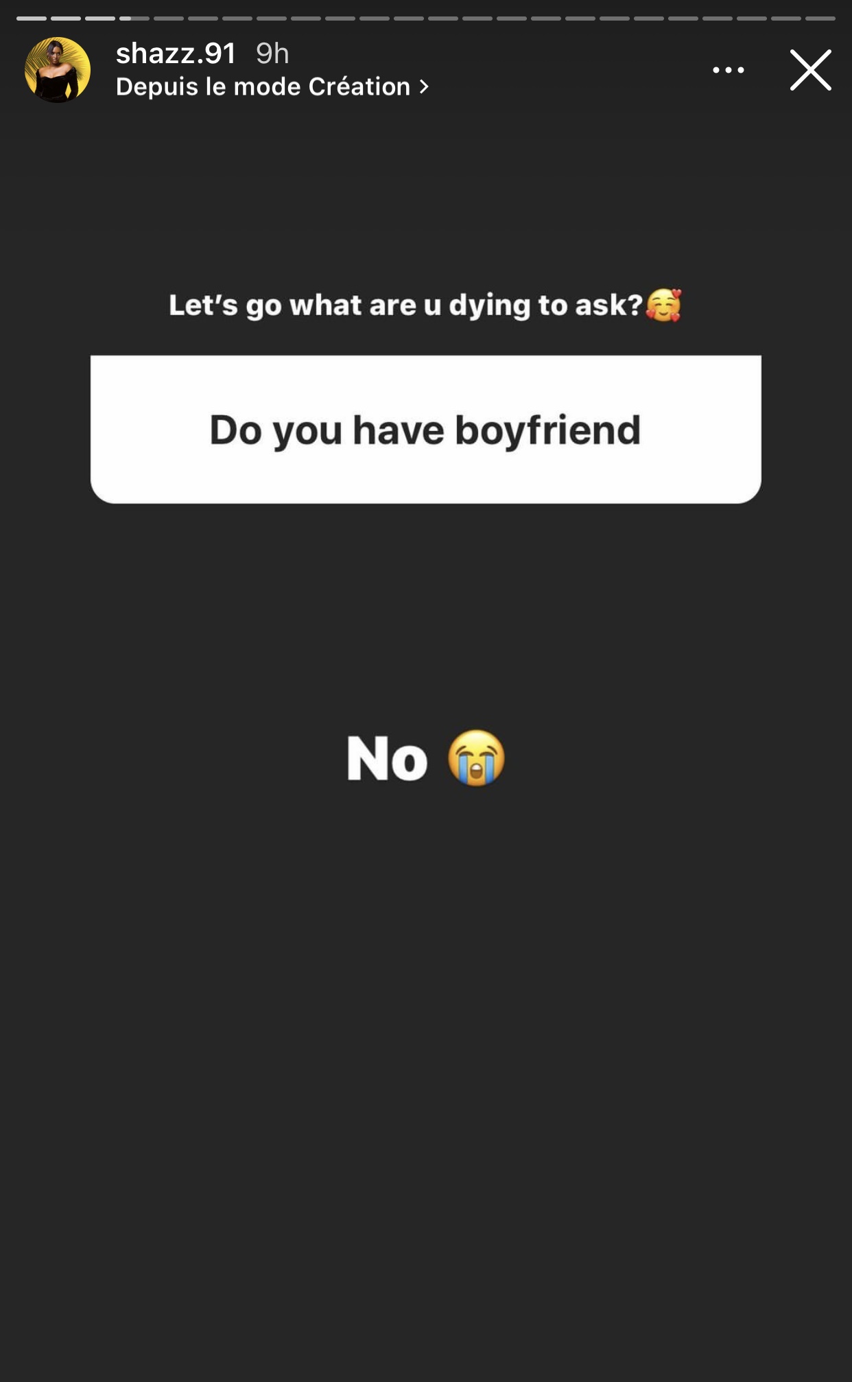 Kuri uyu wa Kane ubwo Shazz yasabaga abafana be kumubaza ibibazo bitandukanye maze nawe akabasubiza, umwe mu bafana be yamubajije niba afite umusore bakundana maze Shazz nta guca ku ruhande ahita muhakanira avuga ko ntawe afite.