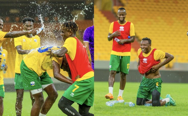 Abakinnyi b’ikipe y’igihugu y’U Rwanda, Amavubi, batunguye bagenzi babo Aimable Nsabimana na Bonheur Mugisha bagize isabukuru y’amavuko maze babasukaho amazi mu mutwe ubwo bari mu myitozo.