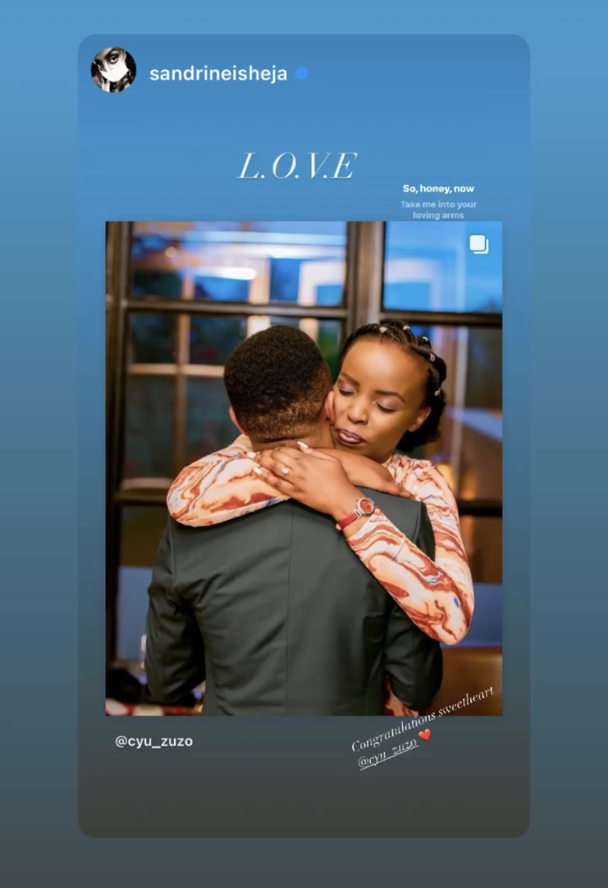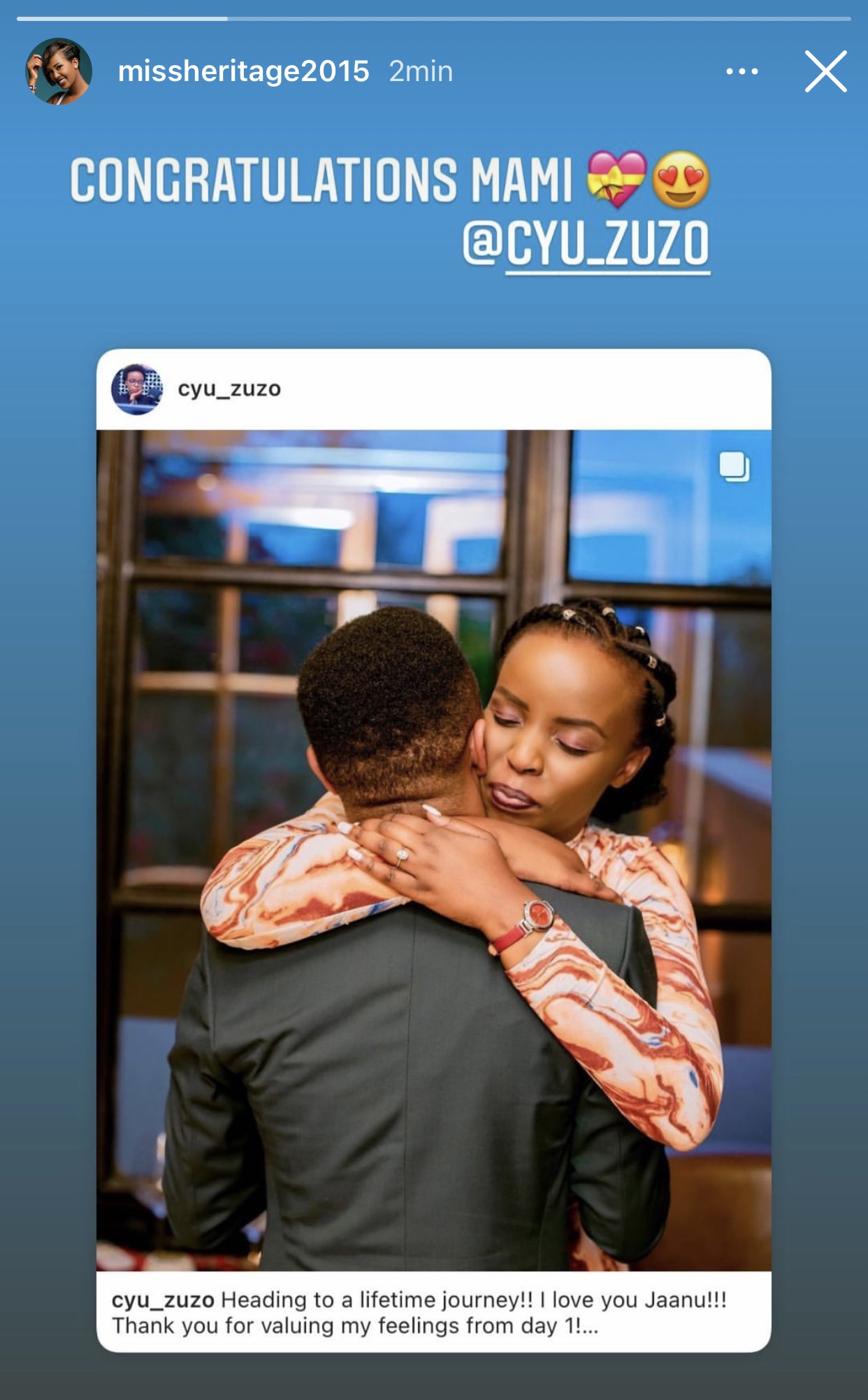 Sandrine Isheja Butera yagize ati « Congratulations sweetheart @cyu_zuzo❤️».