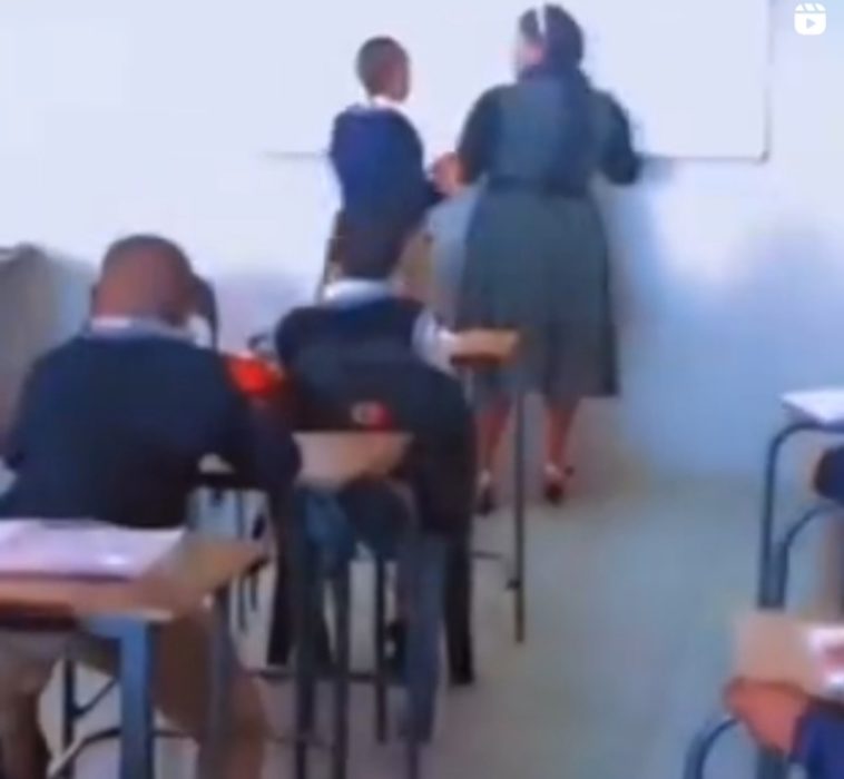 Abanyeshuri batunguye mwarimu wabo maze baramukanga akizwa n’amaguru . Nk’uko bigaragara mu mashusho yo kuri instagram uyu mwarimukazi yarimo yigisha maze umunyeshuri umwe amuturuka inyuma amutunguye amukoraho maze ahita yigwisha hasi.