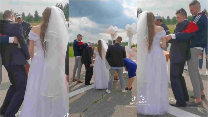 Amakuru akomeza avuga ko umusore utatangajwe amazina n’igihugu akomokamo yari yaraye asangira inzoga n’abantu b’inshuti ze baranywa ijoro ryose karahava, bwakeye ari bwo atangiye gusinda bya nyabyo. Abantu babonye ko nta bundi buryo buhari usibye kuba yajya gushyingirwa n’ubwo yasinze hakitabazwa abasore bamutwara mu maboko bakamurandata. Imiryango yari mu bukwe yakozwe n’ikimwaro kubera ubusinzi bw’umukwe.