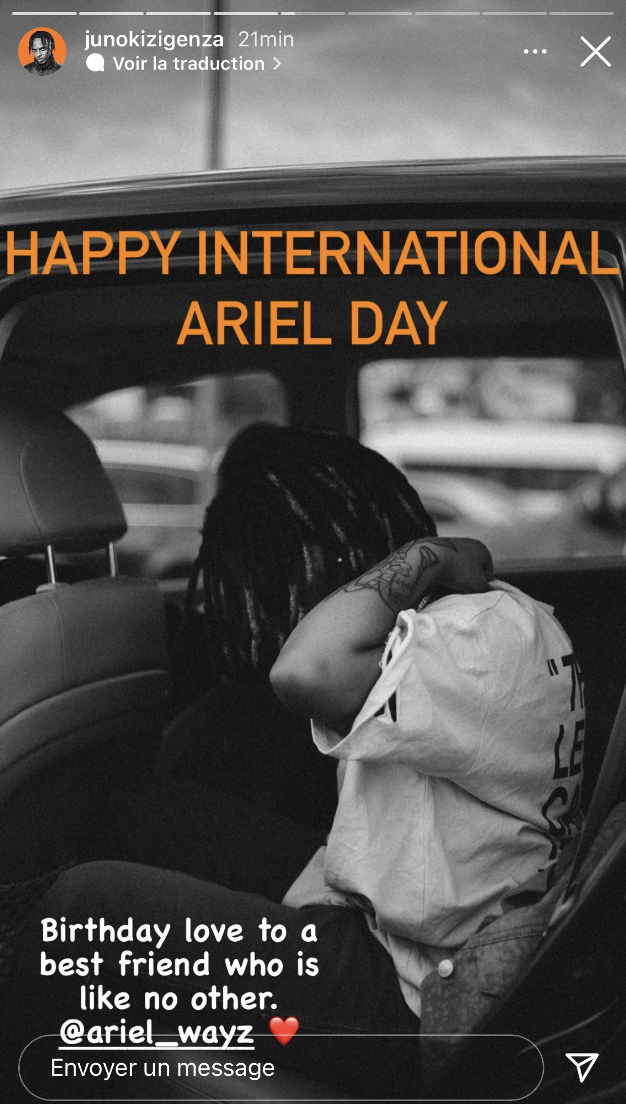 Kuri uyu wa 09 Nzeri nibwo umuhanzikazi Ariel Wayz yizihije isabukuru y’amavuko. Juno Kizigenza byagiye bivugwa ko bakundana ntiyatanzwe kumwifuriza isabukuru nziza y’amavuko. Juno abinyujije kuri story ya instagram ye yanditse amagambo agira ati « Birthday Love to a best friend who is like no other @ariel_wayz ❤️4 ».