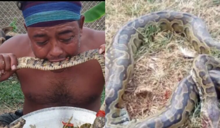 Ibyo kuyitinya ntabikozwa: Nawe irebere umugabo wariye inzoka nk’urya ifi (Amashusho)