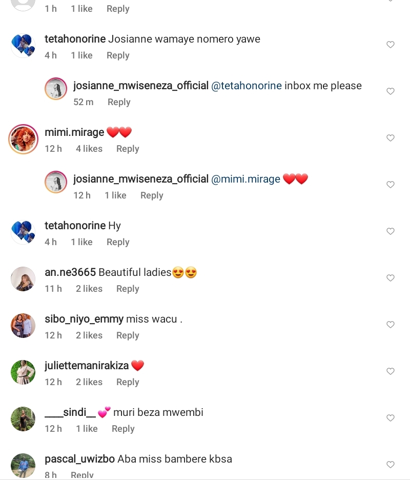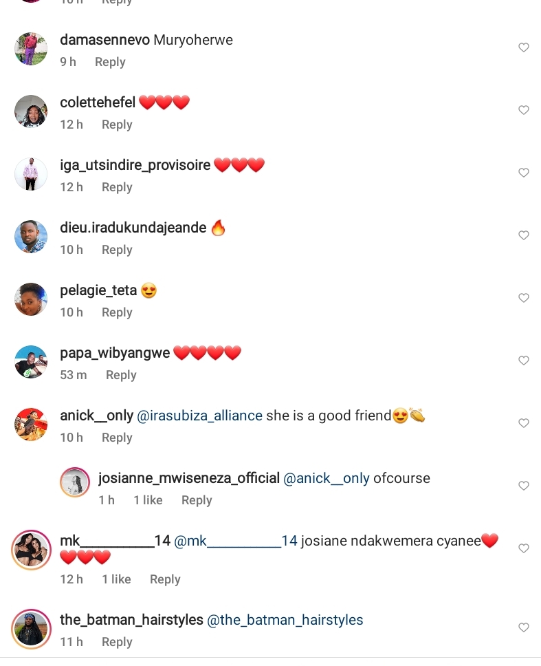 Ni amashusho yashyizwe ku rukuta rwa Instagram ya Miss Mwiseneza, aho yari kumwe na mugenzi we Alliance aho bari basohokanye basangira ibinyobwa.Josiane yanditseho ati:”nishimira ko turi inshuti kubera impamvu nyinshi”.