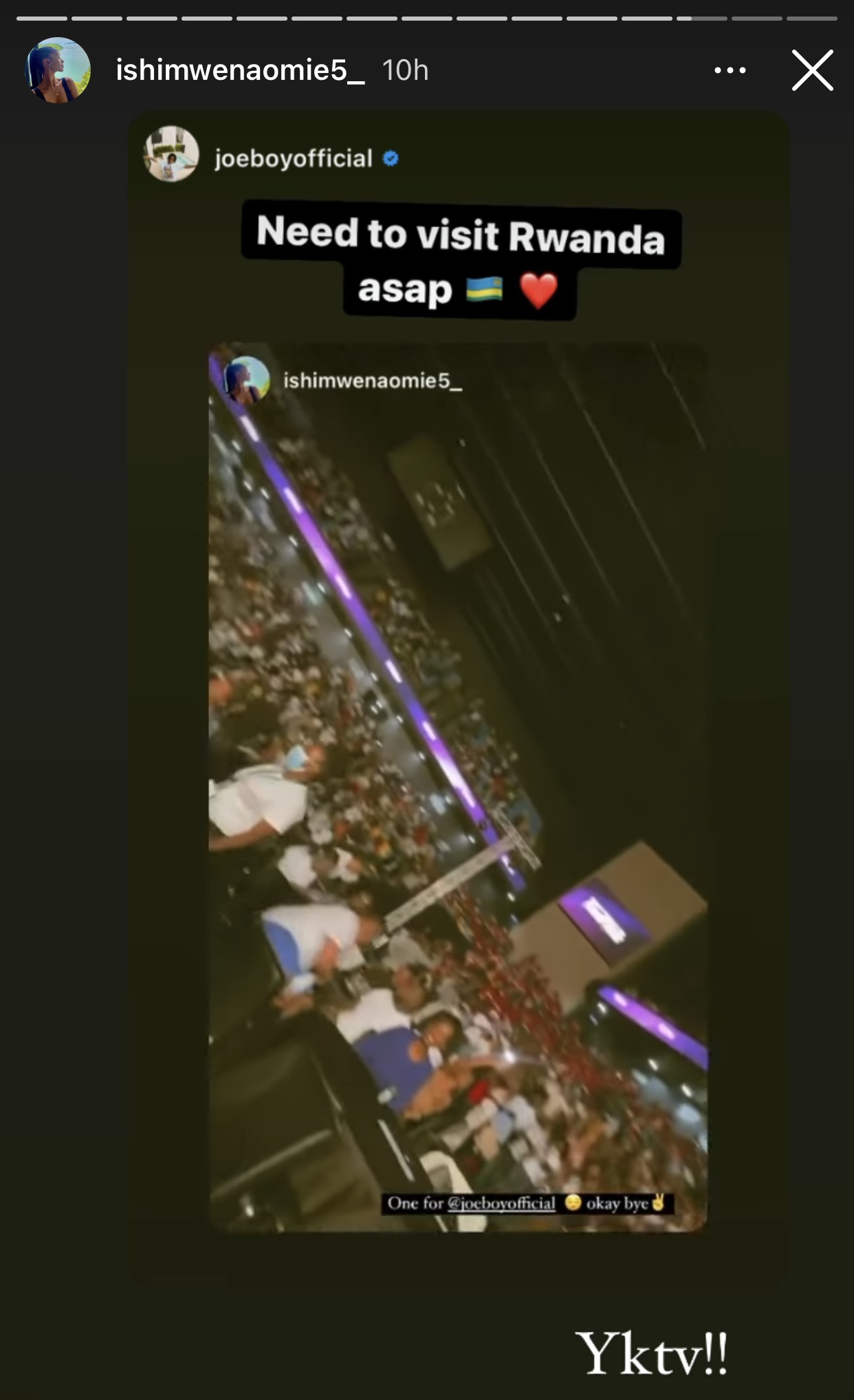 Ku mugoroba wo ku munsi w’ejo ubwo Miss Nishimwe Naomie yarari mu gitaramo cya 10 Years of Bruce Melodie cyabereye muri Kigali Arena, yafashe Amashusho ubwo abari bahari bari barimo kuririmba indirimbo Alcohol ye maze aya mashusho Naomie ayashyira kuri story ya instagram ye akora Tag ku muhanzi JoeBoy wayiririmbye.