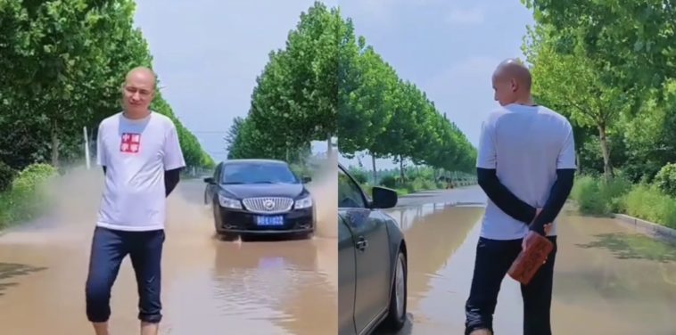 Ku mbuga nkoranyambaga zitandukanye by’umwihariko kuri instagram harimo gucicikana video agaragaza umugabo wafashe itafari maze arihisha inyuma ye nyuma yuko inyuma ye hari haturutse imodoka ishaka kumutera ibyondo.