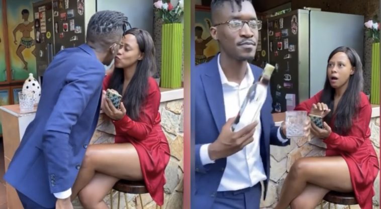 Umukobwa yahuye n’akaga gakomeye cyane ubwo umusore yamusanganiraga agasa nkushaka gusomana nawe gusa umusore we yashakaga kwifatira inzoga yari iri iruhande rw’uyu mukobwa.